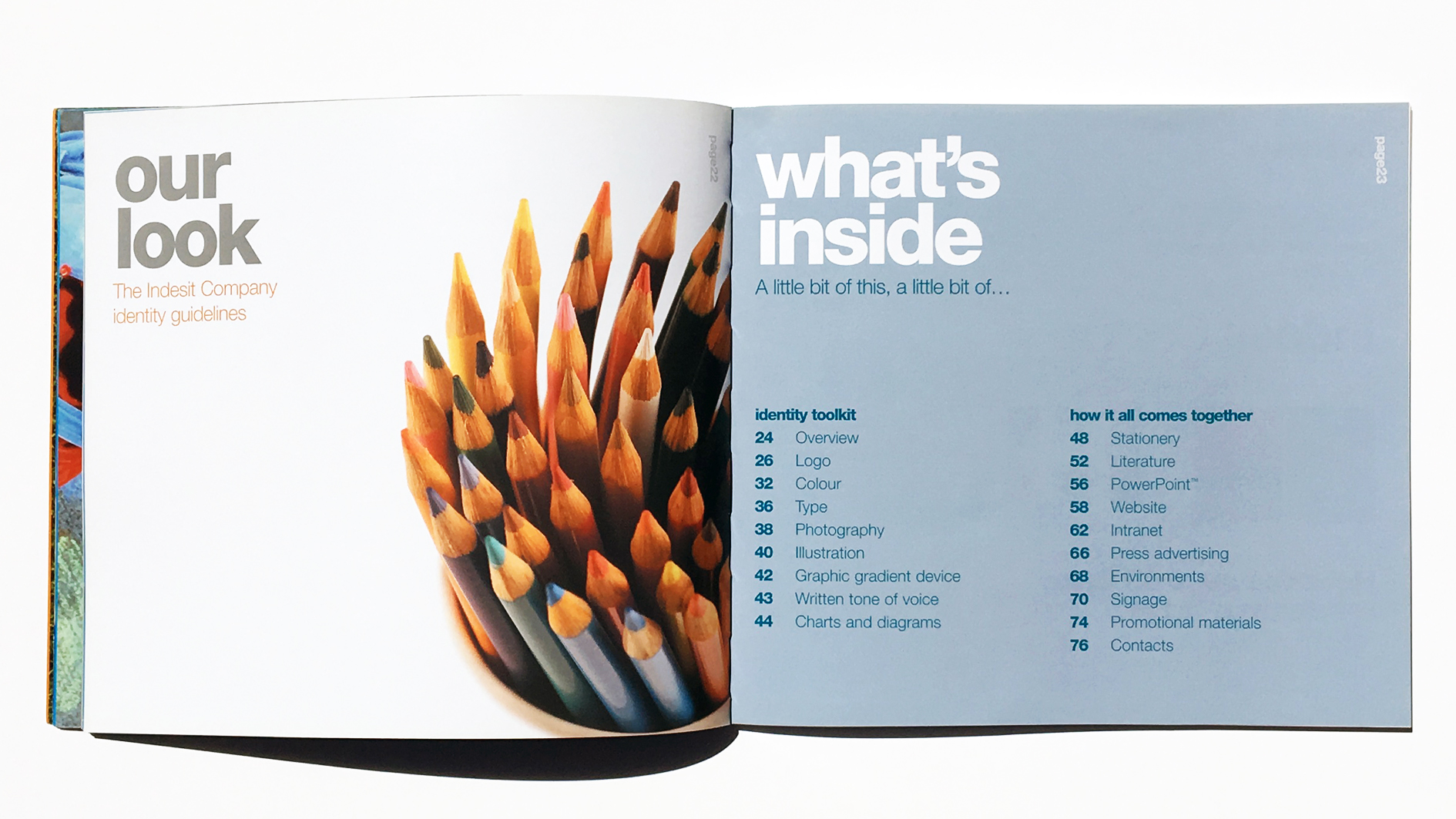 The Indesit Company now have a new logotype and a whole new identity system containing key identity elements such as typeface, colour and graphics, and key applications including stationery, literature, online, advertising and environments.